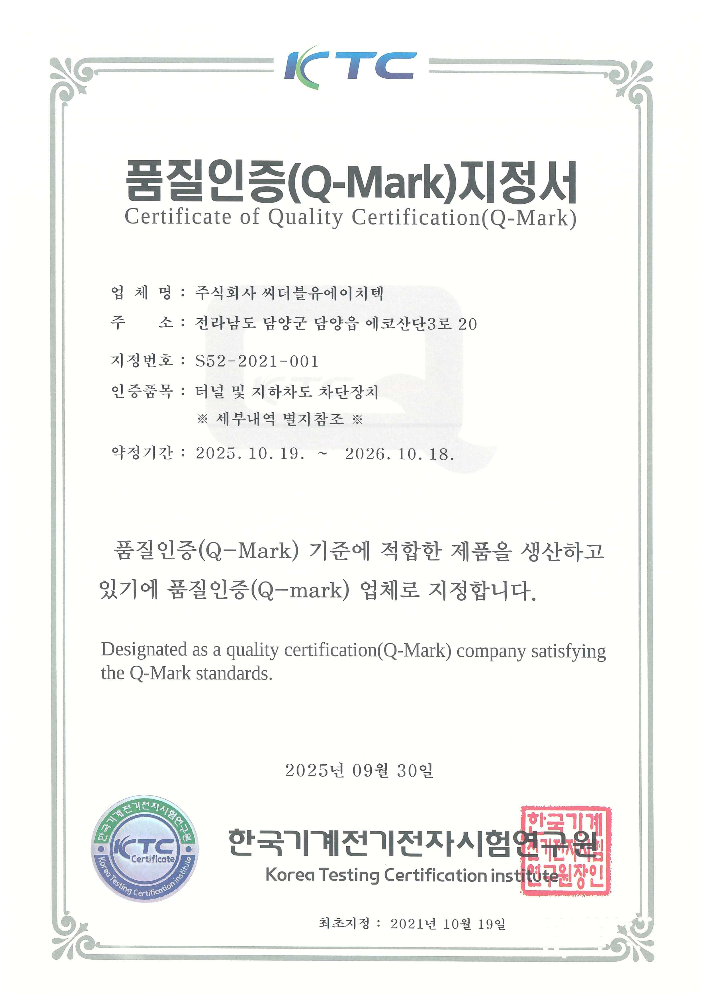 터널 및 지하차도 내부에서 발생할 수 있는 교통사고, 화재, 침수 등의 비상상황 발생시 원격 및 자동으로 차단막을 내림으로써 터널(지하차도)을 향해 진입하는 차량 운전자에게 위험을 인지시키고 터널진입을 금지하는 메시지(차단막 작동, 경광등 발광, 사이렌 등)를 지속적으로 전달하여 후속 차량의 2차 사고를 예방하는 교통안전시스템